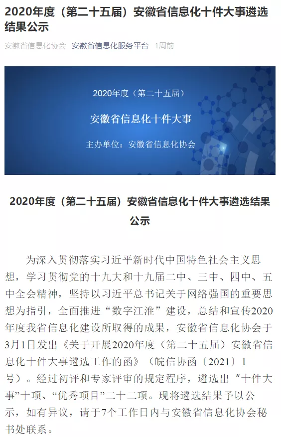 【太阳成集团tyc122cc入口头条】太阳成集团tyc122cc入口信息成功入选2020年度安徽省信息化优秀项目!