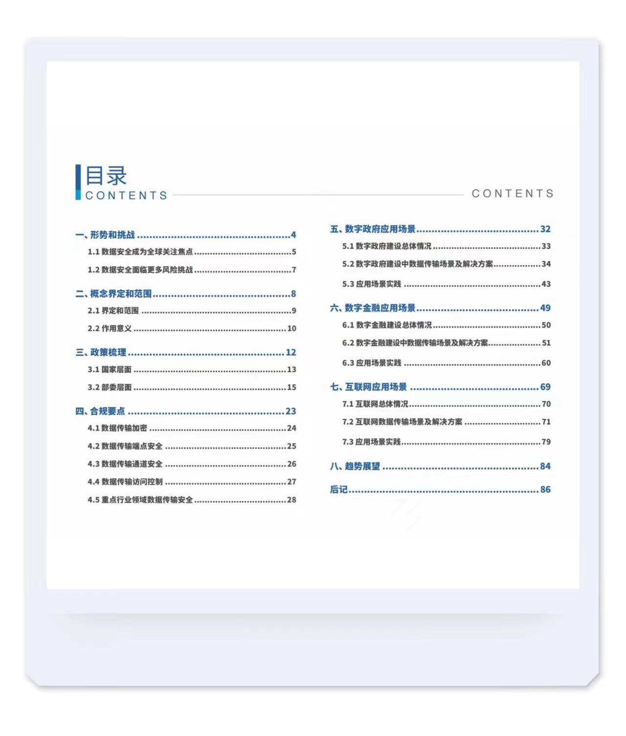 《白皮书》基于当前形势研判,聚焦数字政府建设、数字金融、互联网等领域中数据传输安全典型应用场景,探讨了主要风险点与解决方案,展望了数据传输安全发展趋势,以期集聚产业优势资源,加强协同合作交流,为政府部门提供决策参考,共绘产业发展新图景。