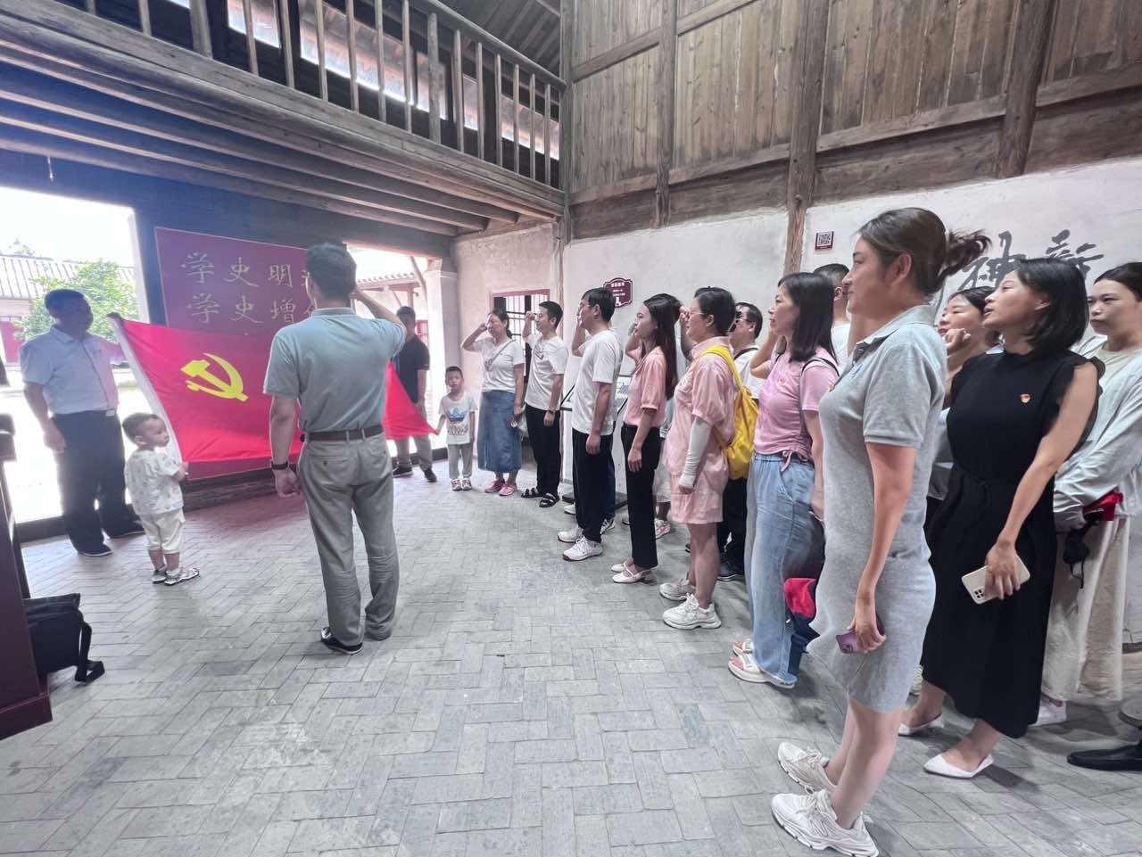 在白茆镇红色教育基地纪念馆里,中共安徽太阳成集团tyc122cc入口支部和中共安徽商贸职业技术学院信息与人工智能学院党总支新老党员齐聚,面对党旗重温入党誓词,感悟初心使命,强化责任担当。